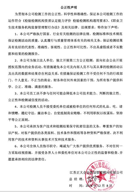 檢測(cè)公正性聲明