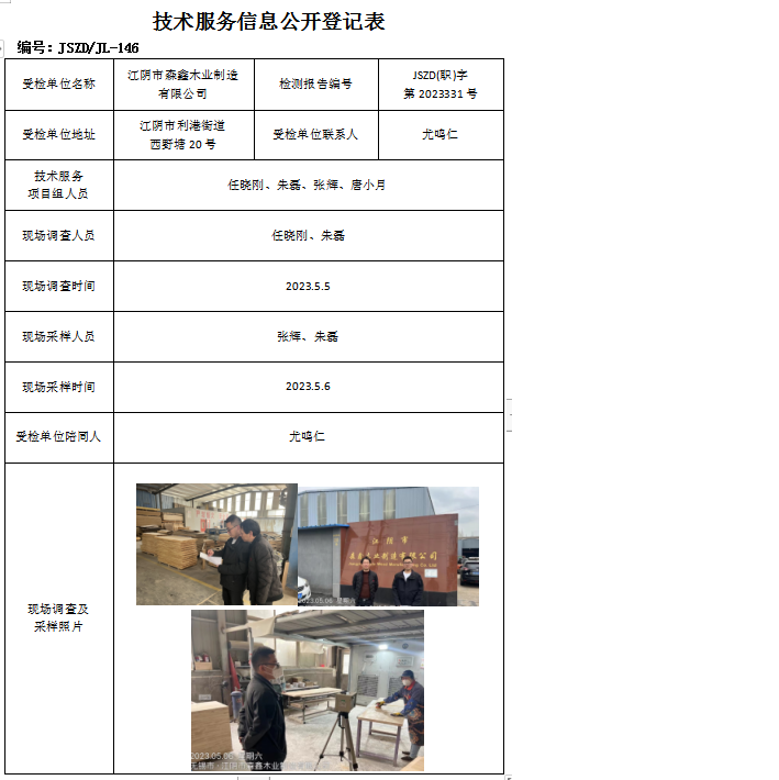 江陰市森鑫木業(yè)制造有限公司職業(yè)衛(wèi)生檢測報告